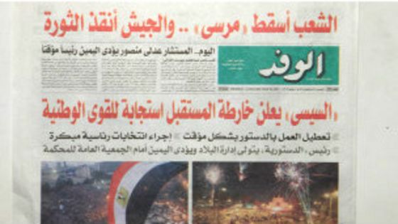 تنافست الصحف المصرية على دعم الإطاحة بالدكتور محمد مرسي من حكم مصر، حيث سارعت على نقل أنباء ما انتهت إليه الأيام الأخيرة من عملية الإطاحة، كما تناقلت تفاصيل البيان الذي ألقاه عبدالفتاح السيسي.