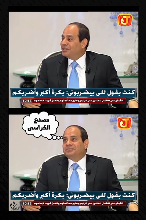 السيسي بيقول لما كانوا بيضربوني وانا صغير كنت بقول لهم :" لما اكبر هضربكم " .. ده انا اتكسف اقولها والله #السيسي_لما_يكبر #الرئيس_العيل