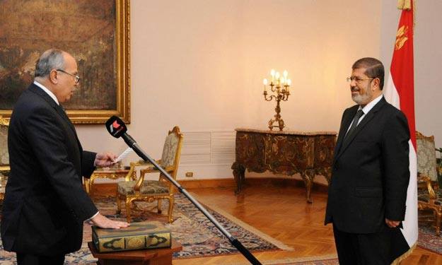 وأشار عددٌ من النشطاء إلى أنه في عهد الرئيس "محمد مرسي" وأثناء إلقاء اللواء شحاته لقسم تعيينه، شن سامح "سيف اليزل" هجومًا كبيرًا، حيث صرح آنذاك قائلًا:"أن الأسلوب الذي أدى به رئيس جهاز المخابرات العامة الجديد القسم أمام رئيس الجمهورية يدل على وجود تيار إسلامي في هرم السلطة المصرية، مشيرًا إلى أن طريقة أداء القسم لرئيس المخابرات العامة ليست جديدة، ولكن الجديد فيها هو وضع المصحف الشريف وقسمه عليه، بالإضافة إلى علانية القسم ونشره في وسائل الإعلام المصرية، فهي سابقة لم تحدث في تاريخ الجمهورية المصرية منذ عام 1952، هذا بالإضافة إلى الإعلان عن رئيس الجهاز نفسه يعتبر جديدًا على جهاز المخابرات المصرية منذ نشأته".