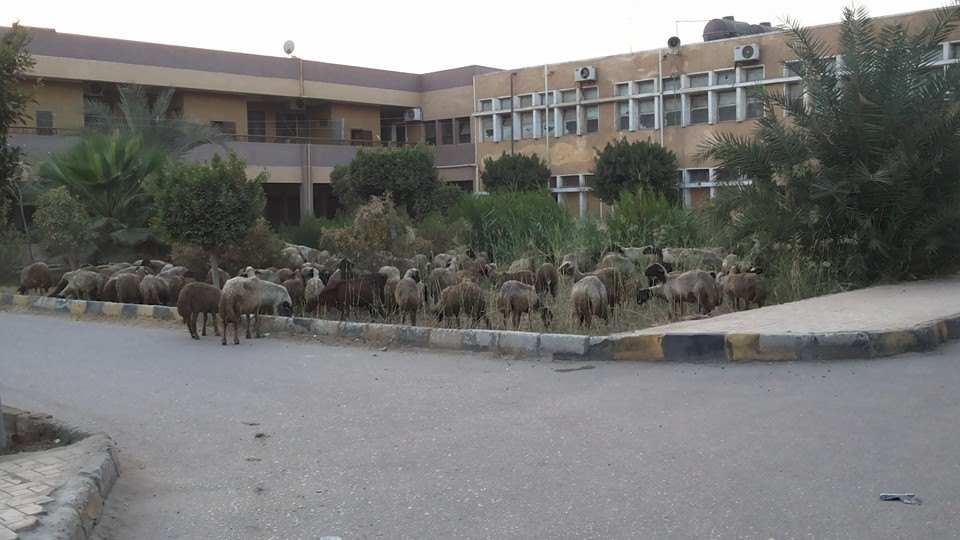 حيث أوضحت الصور مجموعة من “الخرفان” التي تتجول داخل مستشفى كفر شكر المركزي بمحافظة القليوبية، دون وجود حتى لأفراد الأمن.
