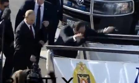 عرضت قناة “روسيا اليوم”، مشهداً لتعثُر السيسي، خلال صعوده أعلى حاملة صواريخ روسية “طراد الصواريخ العملاق”، خلال اصطحاب الرئيس الروسي فلاديمير بوتين له خلال جولة داخل أسطول البحر الأسود الروسي، وذلك لاستعراض الإمكانيات الهائلة لطراد “موسكفا” الصاروخي.