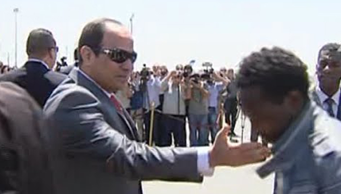 تخلل موقف محرج مراسم استقبال السيسي بعدما وصل إلى العاصمة الإثيوبية أديس أبابا في 23 مارس 2015، على هامش استكمال المباحثات الخاصة باتفاقية سد النهضة.
