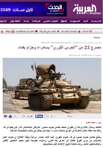 ونشرت صحيفة "الزمان العراقية" من جهتها، خبرًا مفاده مقتل 23 عنصرًا من الحرس الثوري الإيراني، بينهم أربعة ضباط في تفجير ومعارك شمال "سامراء" وغرب "بغداد".