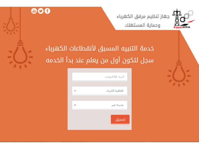 أعلنت الصفحة الرسمية لجهاز تنظيم مرفق الكهرباء وحماية المستهلك، على موقع التواصل الاجتماعي "فيس بوك" -اليوم الثلاثاء- توفير خدمة جديدة للتنبيه المسبق عن انقطاعات الكهرباء.