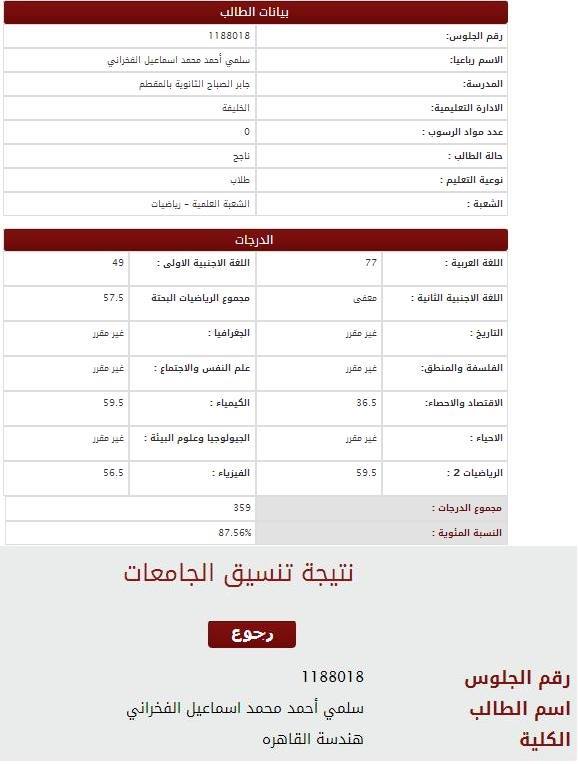 وتوضح الشبكة أن الطالبة المذكورة معفاة من اللغة الفرنسية لأنها محولة من الإمارات وتعفى من اللغة الفرنسية إذا التحقت بالتعليم الثانوي العام في مصر، وبالتالي إذا كان مجموع طالب الثانوي العادي 410 يقل الطالب المحول من الإمارات أو الأزهر عنه بـ 40 درجة، وبالتالي يحسب مجموعه الكلي من 370 فتكون هذة الطالبة حاصلة على 97,02%. وهو ما يؤهلها لكلية الهندسة بجامعة القاهرة.