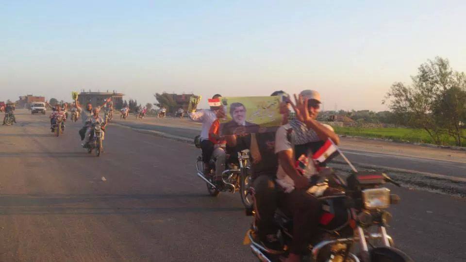 انطلقت مسيرة بالدراجات النارية لرافضي الانقلاب في "الجمالية" بمحافظة "الدقهلية". رفع المشاركون فيها صور الرئيس الشرعي محمد مرسي، وشارات رابعة، وسط تفاعل ملحوظ من المارة وسائقي السيارات .