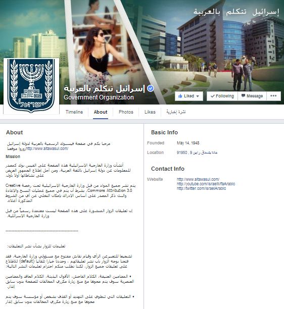 إتهمت صفحة إسرائيل العربية التي تعرف نفسها أنها الصفحة الرسمية لدولة أسرائيل على موقع التواصل الاجتماعي فيس بوك دولة قطر بتمويل المقاومة الفلسطينية وعلى راسها حركة حماس وتزويدها بتقنيات صواريخ متطورة تضرب عمق اسرائيل.