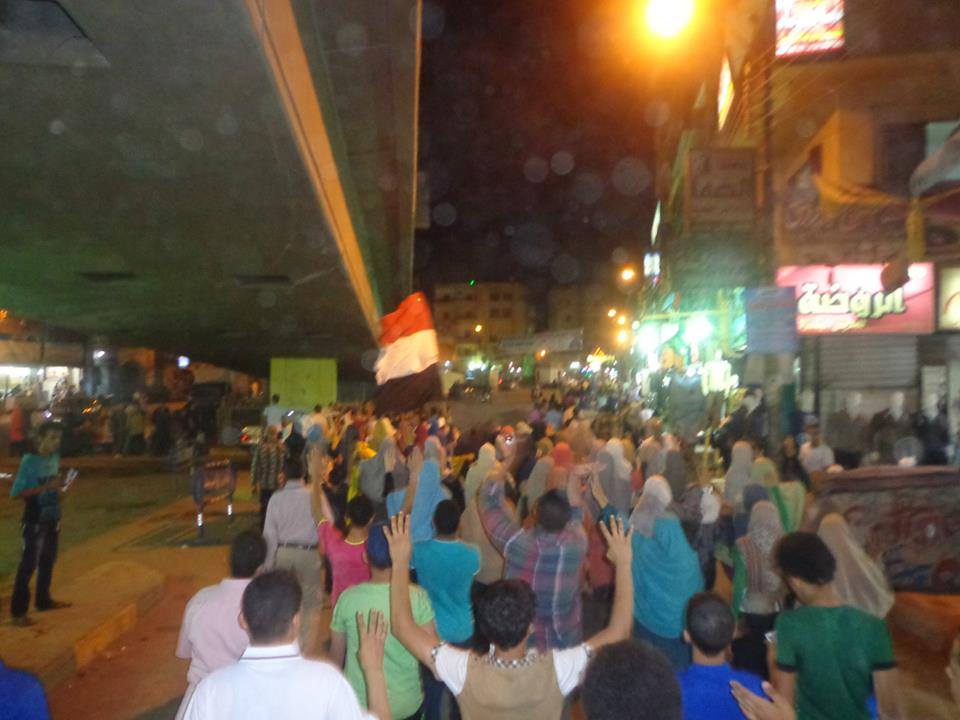 انطلقت التظاهرة من أمام ميدان المحطة، حمل المشاركون صور الرئيس الشرعي الدكتور "محمد مرسي"، وشارات "رابعة"، مرددين هتافات "دكتور مرسي فينك فينك .. ضربوا غزة عيني عينك".