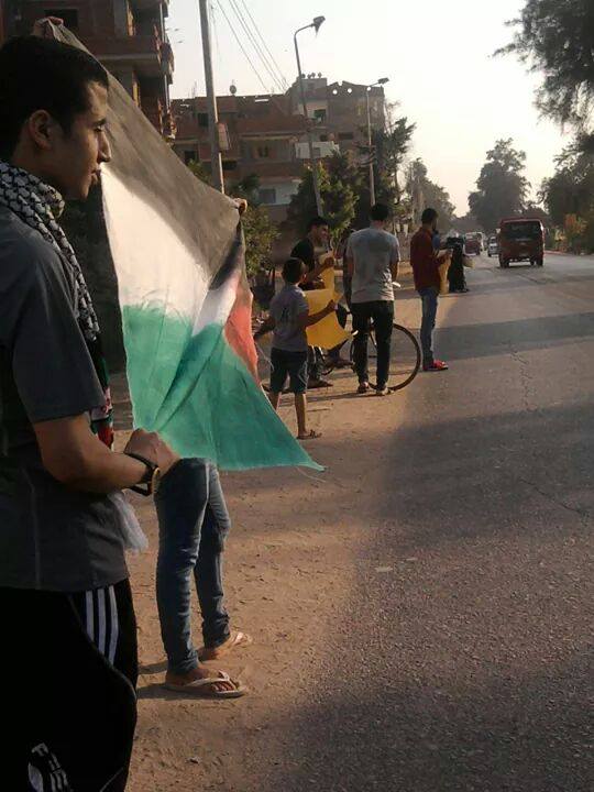 ورفع المشاركون خلالها أعلام فلسطين وشعارات تضامنًا مع المقاومة وشارات رابعة العدوية وهتفوا ضد الكيان الصهيوني الغاصب وحكم العسكر.