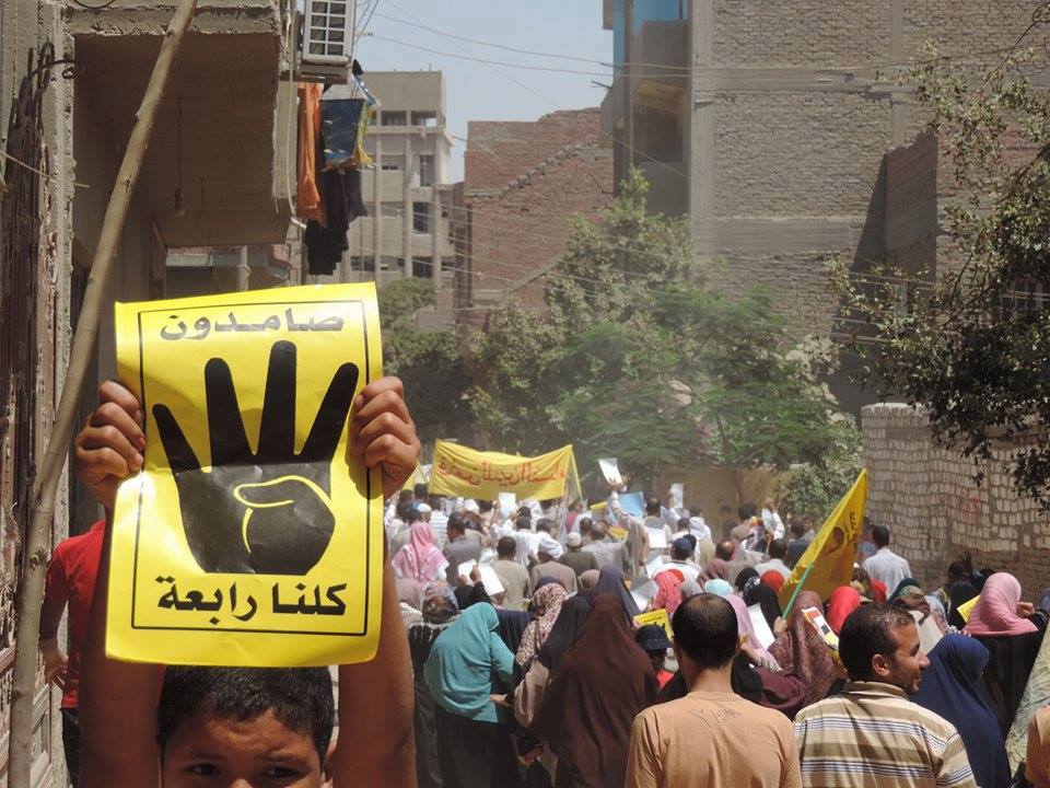 رفع المشاركون شارات رابعة، وأعلام مصر، فيما تفاعل المارة والأهالي معهم بالتلويح بشارة رابعة.