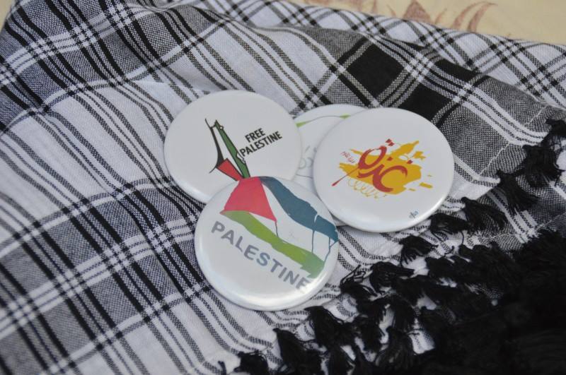 واشتمل المعرض على دبابيس، وتيشيرتات، وكوفيات، وكذلك مجلات مطبوع عليها شعارات داعمة لـ"غزة"، وأدوات منزلية، وتحف وأنتيكات، فضلًا عن صندوق مخصص لجمع التبرعات المالية.