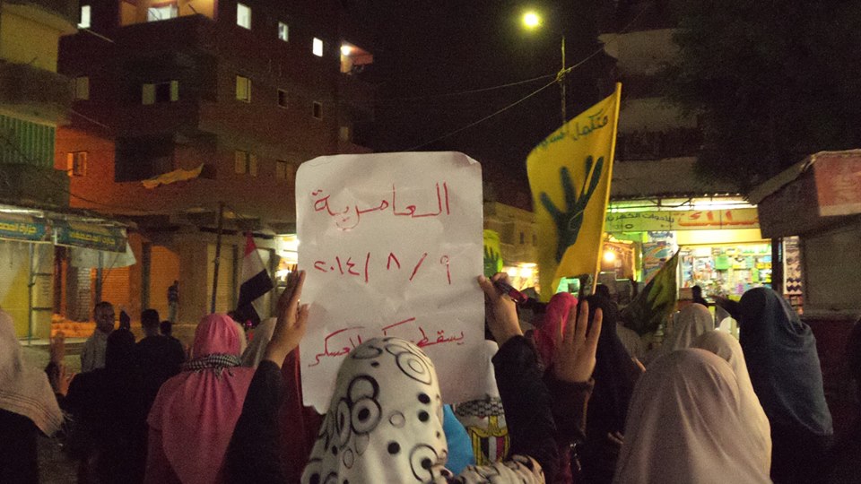 شهدت منطقة "العامرية" التابعة لمحافظة "الإسكندرية"، تظاهرة مناهضة للانقلاب العسكري، انطلقت من محيط "مسجد الشرقاوي"، حيث رفع المشاركون شارات رابعة، ولافتات تضامنية مع أهالي "غزة".