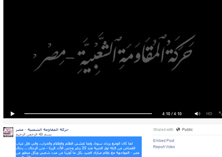 وتابع بيان الحركة الأول، نبأ التئام مجموعات ردع العسكر بمحافظة القاهرة موحدة على طريق الحركة وتحت اسم: (مجموعة الشهيد محمد حلمي – القاهرة)، ومضيفة أنها على وعد "بأن تتوالى عليكم البيانات ببشارات من جميع المحافظات قريبا إن شاء الله، أولها اليوم بعملية نوعية من تنفيذ حركة المفاومة الشعبية – مصر".