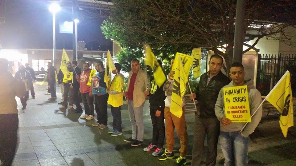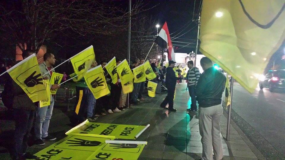 نظم العشرات بلاكمبا بمدينة سيدني بأستراليا، وقفة احتجاجية – اليوم الخميس- لإحياء ذكري مرور عام علي مذبحتي فض اعتصامي رابعة العدوية ونهضة مصر،مناصرة لحق الشهداء ودحر اﻹنقلاب.