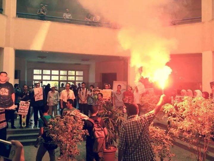 ومن جانبه طالب رئيس الجامعة "العزازي"؛ الطلاب بإيقاف الفعالية، وهو مارفضه الطلاب، مؤكدين علي استمرار حاركهم الثوري الطلابي حتى إسقاط الانقلاب، والقصاص للشهداء.