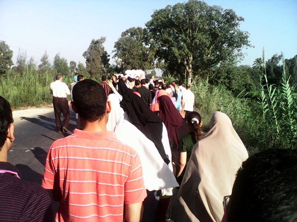 وفي مركز "الحامول"، نظم أهالي قرية "غرب تيرة"، سلسلة بشرية على طريق "غرب تيرة – الحامول"، رفع المشاركون خلالها صورًا للمعتقلين، وأخرى للشهداء، مطالبين بالقصاص لدمائهم، وأيضًا بمحاكمة قائد الانقلاب "عبدالفتاح السيسي"، ووزير داخليته "محمد إبراهيم".