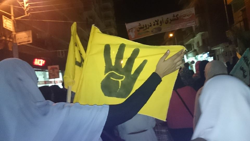 وكانت للنساء في المسيرة مشاركة كثيفة، إذ رفعن رايات رابعة، وأعلامًا فلسطينية.