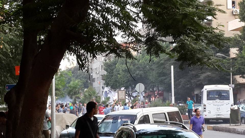فيما قامت قوات الأمن بإطلاق قنابل الغاز، وطلقات الخرطوش والرصاص الحي، الأمر الذي أدى إلي تفريق التظاهرة بالشوارع الجانبية، وسط حالاتٍ من الكر والفر في صفوف المتظاهرين .