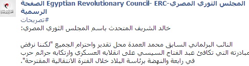 أعلن خالد الشريف، المتحدث باسم المجلس الثوري المصري، رفض المجلس لمبادرة النائب البرلماني السابق محمد العمدة لأنها تكافىء عبد الفتاح السيسى على انقلابه العسكري.