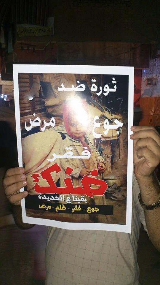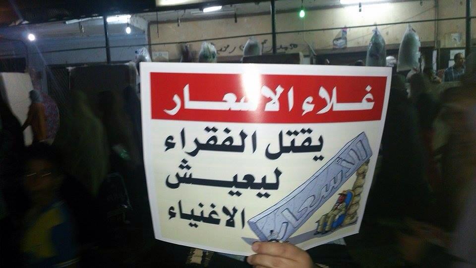 رفع المشاركون خلالها شارات رابعة، وأعلامًا تحمل صورًا للرئيس الشرعي "محمد مرسي"، ولافتاتٍ كتب عليها "غلاء الأسعار .. يقتل الفقراء .. ليعييش الأغنياء"، مرددين هتافاتٍ منددة بالأوضاع الاقتصادية المتردية وغلاء الأسعار، مطالبين بإسقاط الانقلاب.
