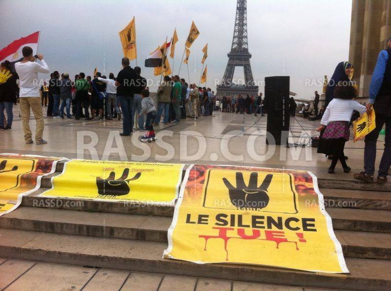 نظمت الجالية المصرية بفرنسا، وقفةً احتجاجية في ساحة ميدان برج أيفل في العاصمة باريس؛ وذلك تنديدًا بالانقلاب العسكري على الشرعية الدستورية في مصر، وما تمراسه سلطات الانقلاب من قمع للمعارضين.