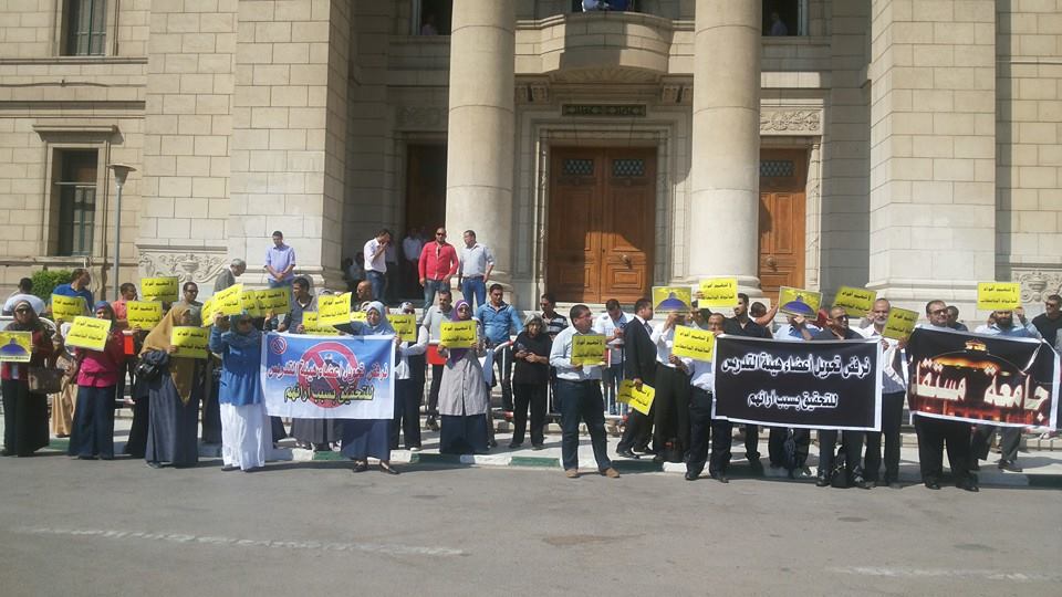 نظمت حركة "جامعة مستقلة" -اليوم الثلاثاء- وقفة احتجاجية بجامعة القاهرة تضامنًا مع اﻷساتذة المحالين للتحقيق وهم الدكتور سيف عبد الفتاح أستاذ العلوم السياسية والدكتور أحمد عبد الباسط المتحدث باسم حركة "جامعة مستقلة".