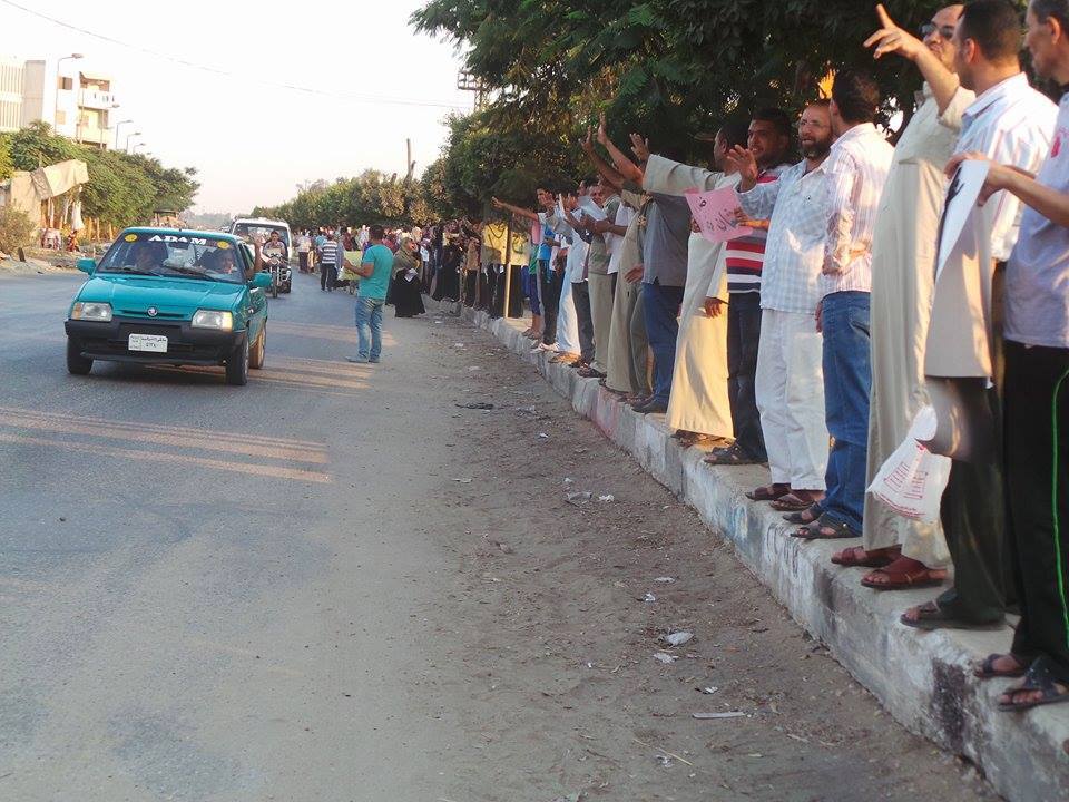 ونظم "التحالف الوطني لدعم الشرعية ورفض الانقلاب" سلسلة بشرية على طريق "بلبيس – العاشر من رمضان"، حيث رفع المشاركون فيها لافتات تندد بالأوضاع الاقتصادية المتردية، فيما لاقت السلسة تفاعل المارة وسائقي السيارات.