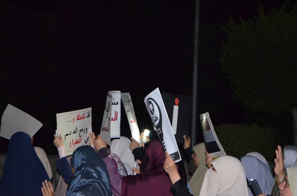 ردد المتظاهرون هتافات: "عيش.. حرية.. بنزين للعربية.. كهربا وشوية ميه"، و"غلوا السكر غلوا الزيت.. بكرة تبيعوا عفش البيت"، هذا وقد تفاعل الأهالي مع المسيرة؛ ملوحين بشارات رابعة للمشاركين.