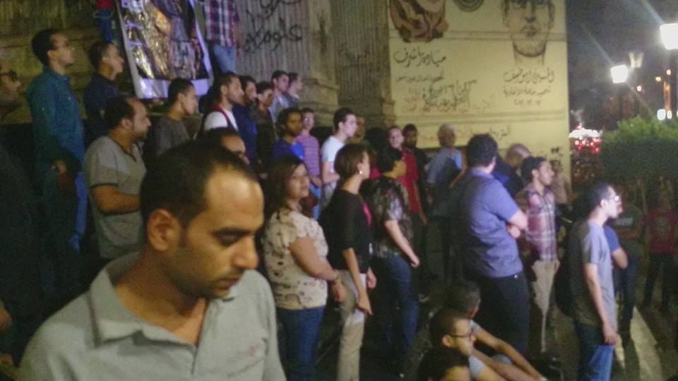 نظم عددٌ من شباب الحركات الثورية، وقفةً احتجاجيةً أمام نقابة الصحفيين، مساء اليوم الأربعاء، تضمانًا مع المعتقلين المضربين عن الطعام داخل سجون العسكر.
