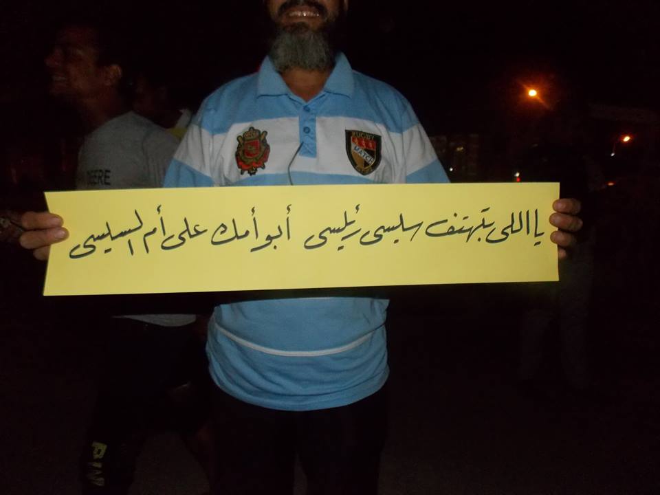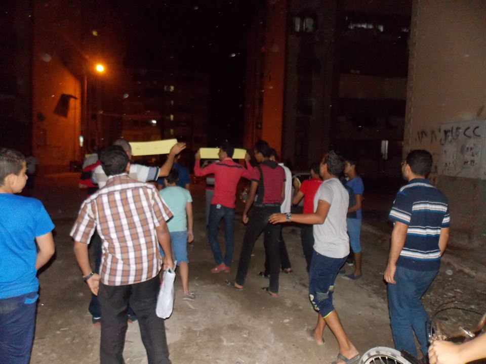 وفي ميدان السيد متولي، نظمت حركة "شباب ضد الانقلاب" سلسلة بشرية، حمل المشاركون فيها لافتات كتب عليها "ثورة جياع" و "الحرية للجدعان".