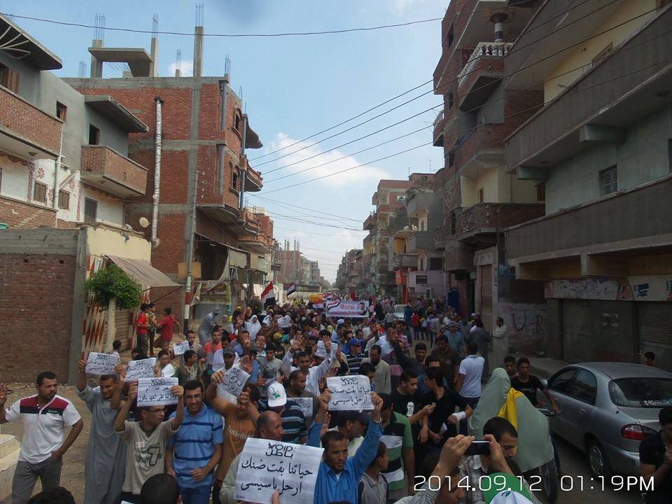 وانطلقت مسيرة حاشدة من أمام كافتيريا الواحة، بمدينة أبو حماد، لتجوب شوارع المدينة، وسط هتافات مناوئة لداخلية الانقلاب، وأخرى مطالبة بالإفراج عن المعتقليين.
