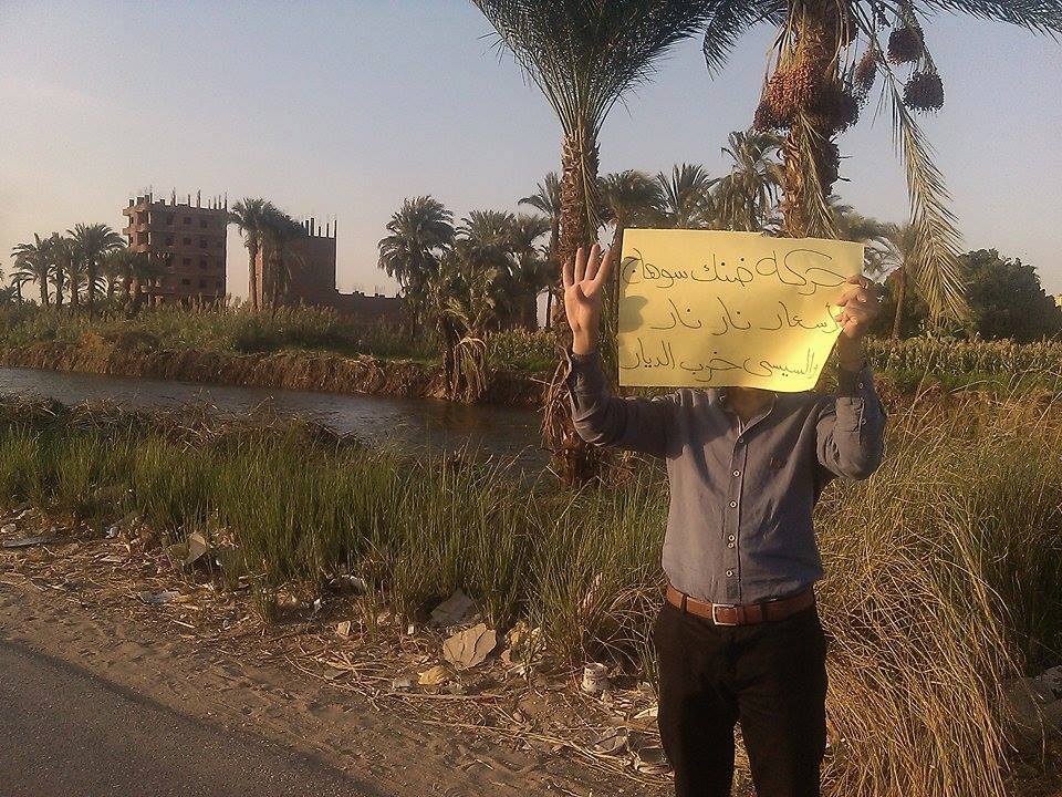 رفع المشاركون خلالها لافتات منددة بغلاء الأسعار، وتردي الأحوال المعيشية للمواطن المصري، كما لوحو بشارات رابعة، رافعين أعلام مصر.