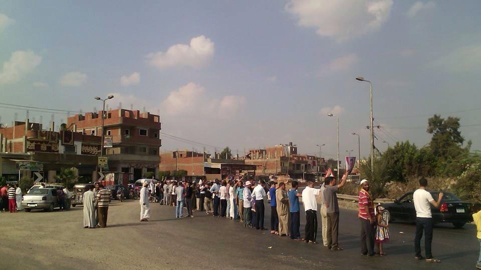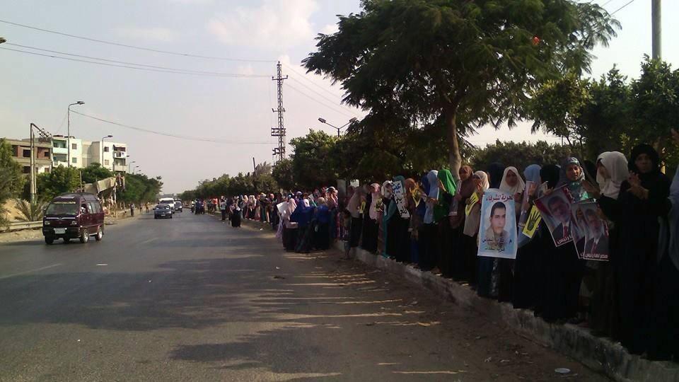 فيما نظمت حركة "نساء ضد الانقلاب" سلسلة بشرية في "بلبيس"، عصر اليوم، رفعوا خلالها صورًا للمعتقليين، مطالبين بالإفراج عنهم، كما أكدوا على استكمالهم للحراك الثوري.