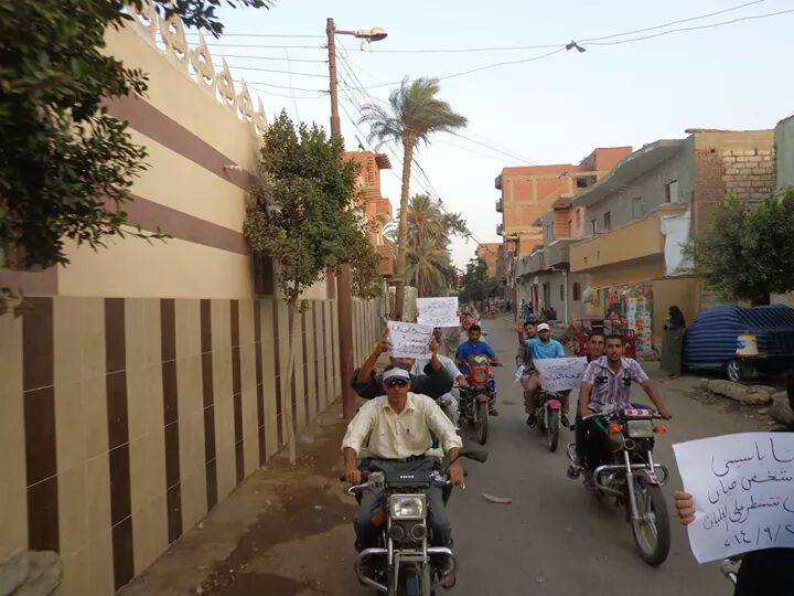 ففي مركز مدينة بني سويف، نظم رافضو الانقلاب مسيرة بالدراجات البخارية على طريق الحكامنة، حيث رفعوا خلالها لافتات تحمل عبارات مناهضة لحكم العسكر، وقمع الداخلية ضد المعارضين للنظام.