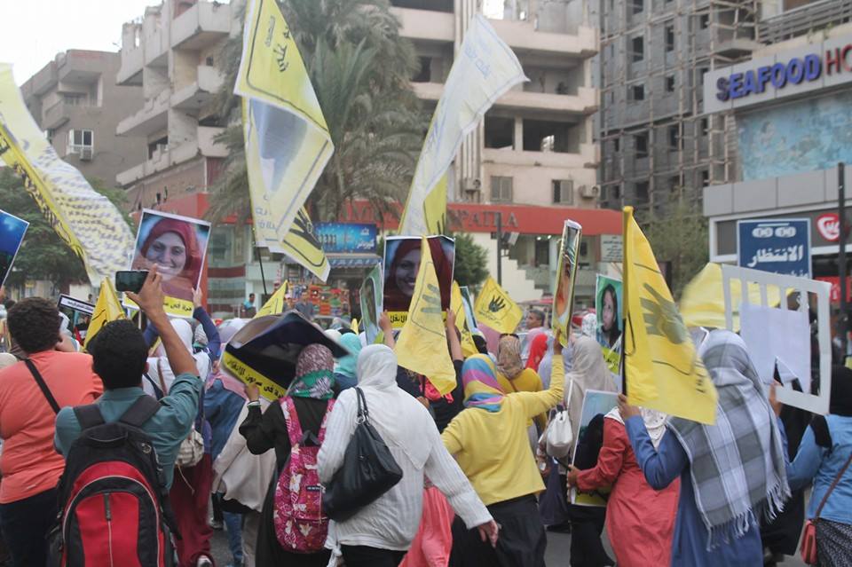 نظمت حركة "نساء ضد الانقلاب" بالقاهرة، مسيرةً حاشدةً في مدينة نصر، اليوم، تحت شعار "بنات مصر خط أحمر"، نددت المشاركات خلالها بالانتهاكات التي يتعرض لها الفتيات المعتقلات، مطالباتٍ بسرعة الإفراج عن كافة المعتقلات في سجون العسكر.