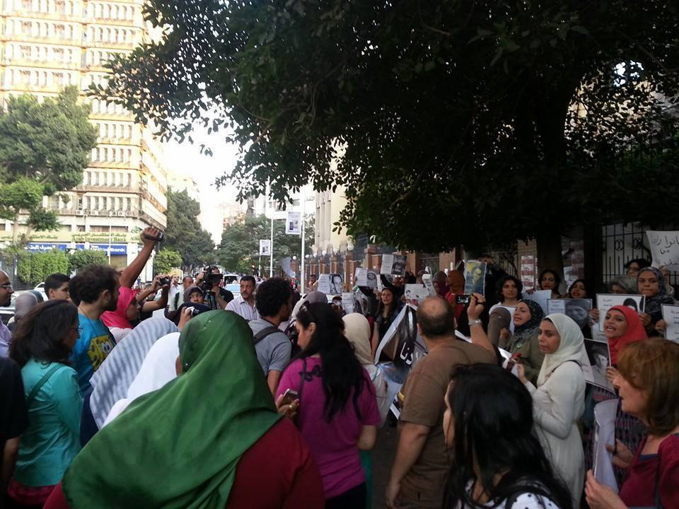 نظمت عدد من الناشطات السياسيات، وقفة احتجاجية أمام نقابة الصحفيين، في الخامسة عصر اليوم، بمشاركة كلٍ من: "غادة نجيب"، و"ليلي سويف"، للمطالبة بالإفراج عن المعتقليين السياسيين في سجون العسكر.