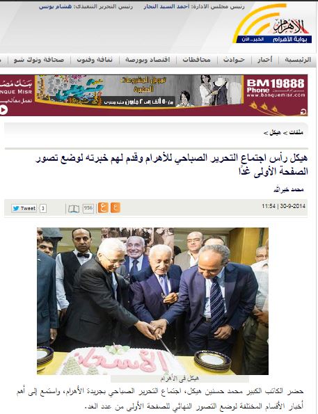 بعد مضي نصف قرن: هيكل يترأس اجتماع تحرير الأهرام