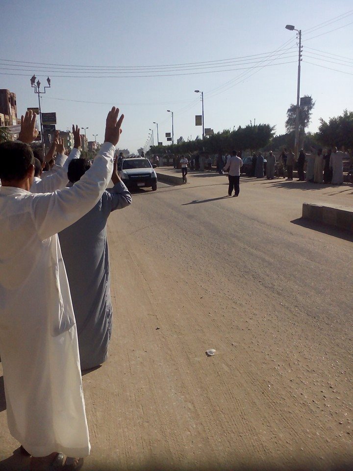 نظم أهالي الحسينية بمحافظة الشرقية -صباح اليوم الاثنين- سلسلة بشرية، تنديدًاً بالانقلاب العسكري وبحملة الاعتقالات المستمرة لشباب المركز واستمرار انقطاع المياه المستمر، في ذكرى مذبحة السادس من أكتوبر التي حدثت العام الماضي.