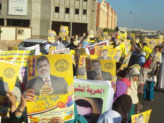 وﺷﻬﺪﺕ ﺍﻟﻤﺴﻴﺮﺓ ﺍﻟﺘﻲ ﺍﻧﻄﻠﻘﺖ ﻣﻦ ﺃﻣﺎﻡ ﺍﻟﺴﻮﻕ ﺍﻟﺪﻭﻟﻲ ﺑﻤﺪﻳﻨﺔ ﺍﻟﺼﺎﻟﺤﻴﺔ ﺍﻟﺠﺪﻳﺪﺓ ﻣﺸﺎﺭﻛﺔ ﻭاسعة ﻭتفاعلا ﻛﺒﻴﺮًﺍ ﻣﻦ ﺍلأﻫﺎلي، ﻭﺃﺳﺮ ﻭﺃﺑﻨﺎﺀ ﺍﻟﻤﻌﺘﻘﻠﻴﻦ ﻭﺍﻟﺸﻬﺪﺍﺀ، ﻣﺮﺩﺩﻳﻦ ﺍﻟﻬﺘﺎﻓﺎﺕ ﻭﺍﻟﺸﻌﺎﺭﺍﺕ ﺍﻟﻤﻨﺎهضة ﻟﺤﻜﻢ ﺍﻟﻌﺴﻜﺮ، ﺭﺍﻓﻌﻴﻦ ﺻﻮﺭ ﺍﻟﺸﻬﺪﺍﺀ، ﻭﺍﻟﻤﻌﺘﻘﻠﻴﻦ، ﻭﺷﺎﺭﺍﺕ ﺭﺍﺑﻌﺔ ﺍﻟﻌﺪﻭية، ﻭﺃﻋﻼﻡ ﻣﺼﺮ، ﻭﺻﻮﺭ ﺍﻟﺮﺋﻴﺲ ﻣﺮﺳﻰ ﺗﺤﻴﺔ ﻟﺼﻤﻮﺩﻩ ﺩﺍﺧﻞ ﺳﺠﻮﻥ ﺍﻻﻧﻘﻼﺏ.