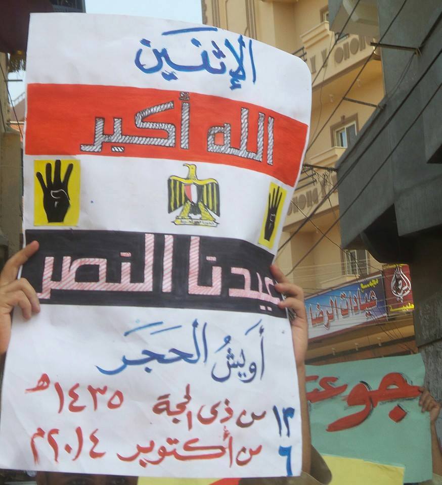 وفي أويش الحجر بالمنصورة، نظمت مسيرة حاشدة صباحية طافت شوارع القرية ألهب الشباب الحماس فيها بالهتافات والألعاب النارية والشماريخ ،ورفع المشاركون فيها شارات رابعة وأعلام مصر ولافتات تحييّ أبطال حرب أكتوبر الشرفاء، وتندد بقادة العسكر الذين لوثوا شرف العسكرية المصرية وقتلوا الأبرياء ، وطالبوا بالقصاص للشهداء ومحاكمة القتلة والإفراج عن كل المعتقلين وسط ترحيب كبير من الأهالي.
