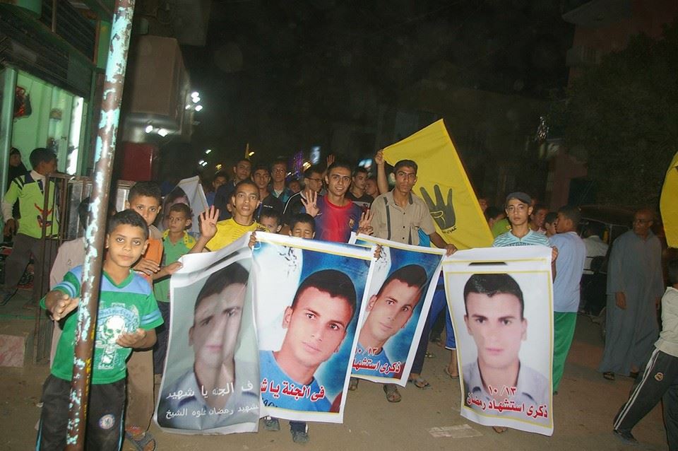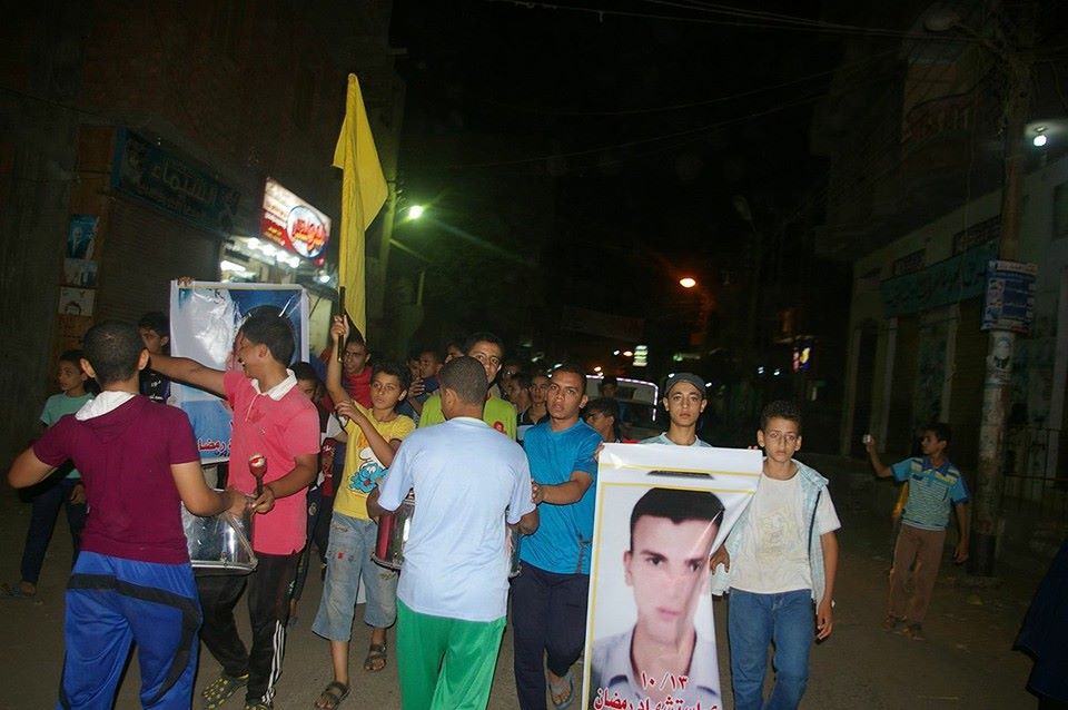 نظمت حركة "شباب ضد الانقلاب" مساء اليوم، في الفيوم، مسيرة شبابية في مطرطارس، إحياءً لذكرى استشهاد "رمضان علوة"، الذي استشهد إثر إصابته برصاص أمن الانقلاب يوم فض رابعة، في مسيرة خرجت بالفيوم تنديدًا بمجزرة الفض.