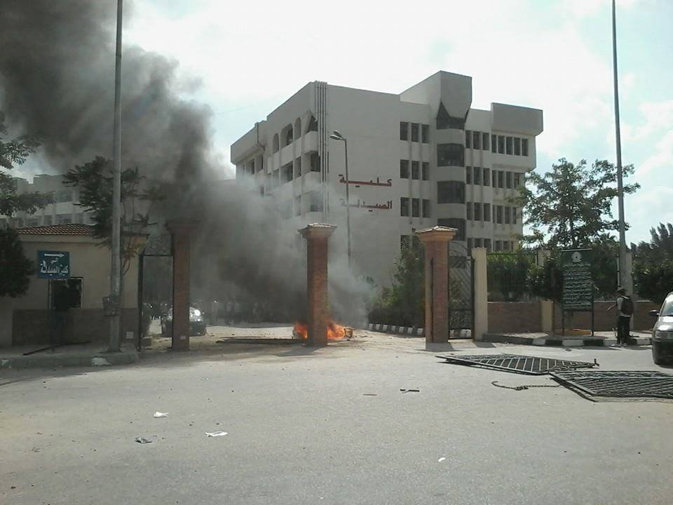 واقتلع طلاب جامعة المنصورة، منذ قليل، بوابات التفتيش أمام كلية الصيدلة، وأحرقوا دراجات الأمن الإداري وفالكون.