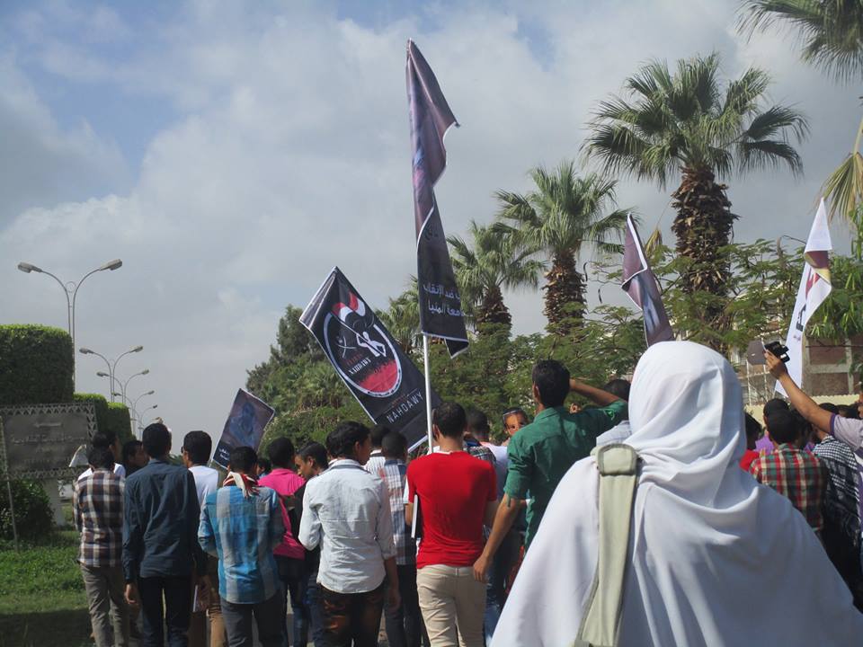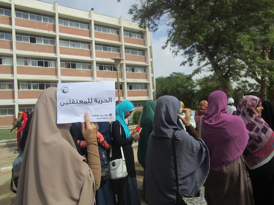 نظمت حركة "طلاب ضد الانقلاب" في  جامعة المنيا، مسيرة حاشدة انطلقت من أمام مبنى كلية الفنون الجميلة، للمطالبة بالإفراج عن زملائهم المعتقليين في سجون العسكر، وللتنديد بالانتهاكات التي تمارس بحقهم، والقمع الطلابي.