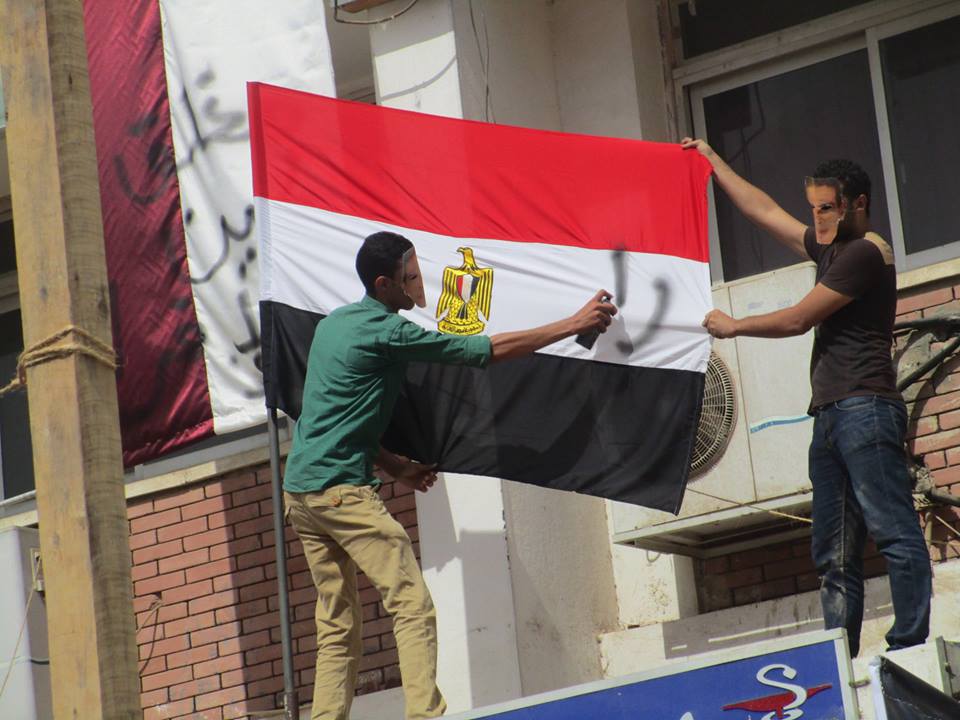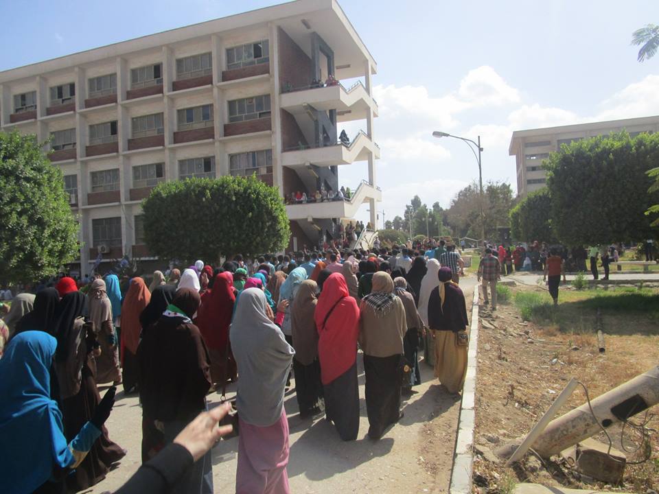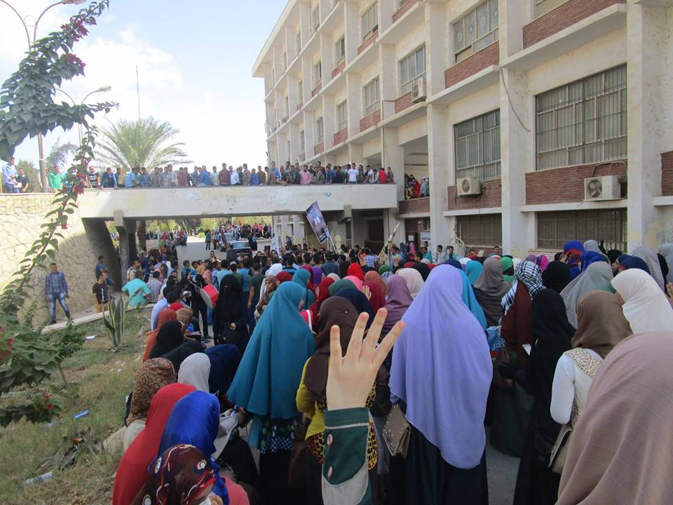 فيما قامت قوات أمن الانقلاب باقتحام الجامعة أثناء تظاهر الطلاب، كما قاموا بإطلاق قنابل الغاز المسيل للدموع، وطلقات الخرطوش، فيما وقعت عدة إصابات في صفوف الطلبة، وذكر شهود عيان  اعتقال أمن الانقلاب لعدد من الطلاب، لم نتوصل إلى أسمائهم حتى الآن.
