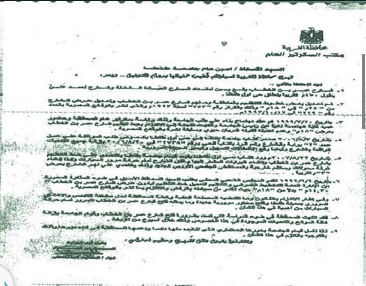 يذكر أنه تم إخطار المحافظ بقرار إيقاف الأعمال المخالفة، وتحرر المحضر من أصل وأربع صور، فيما أرسل الأصل للنيابة لرفع الدعوى وطلب الحكم، وبعد صدوره تغاضى المحافظ عن تنفيذ القرار.
