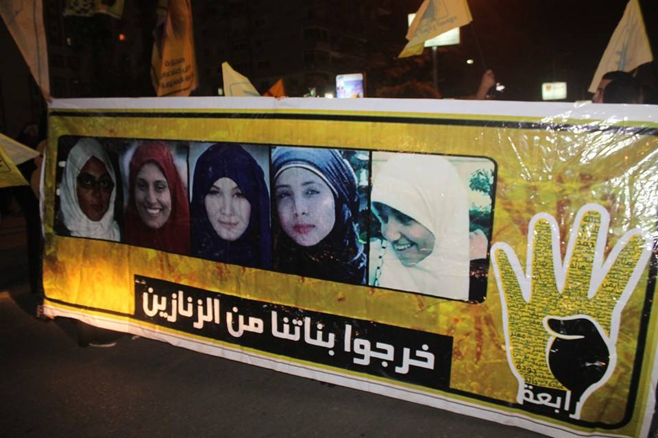 حمل المشاركون صورًا للمعتقلات، مطالبين بالإفراج عنهن، كما حملوا شارات رابعة، وسط مشاركة لحركة "نساء ضد الانقلاب"، اللائي وضعن في أيديهن قيودًا؛ للتنديد بحبس البنات.