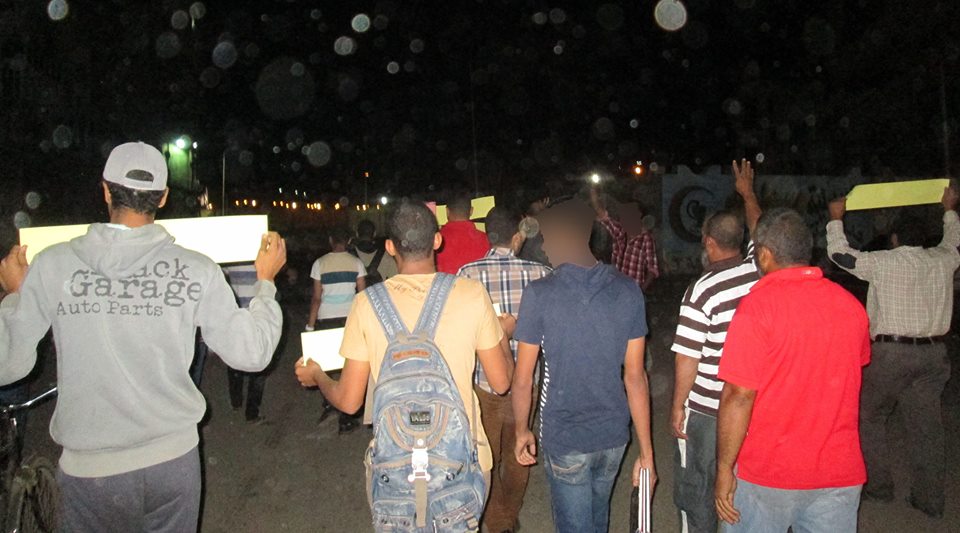 حيث نظم المشاركون سلسلة بشرية، ثم مسيرة، انطلقت من حي الزهور، رفع فيها شارات رابعة، ولافتات تندد بانتهاكات وجرائم الحكم العسكري في تهجير أهالي سيناء، كما نددوا بتردي الأوضاع الاقتصادية، وغلاء الأسعار.