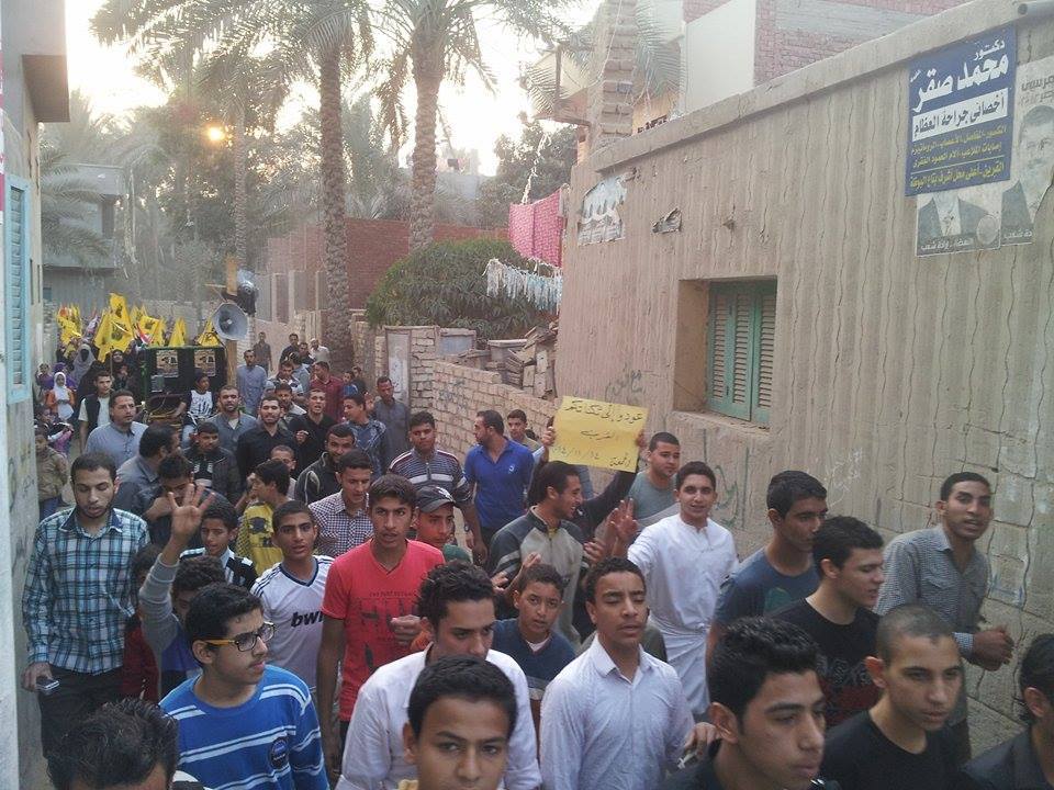 انطلقت المسيرة من حي الشورى، كما حمل المشاركون شارات رابعة، وصورًا للرئيس محمد مرسي، مطالبين بعودته، فيما اختتمت المسيرة أمام منزل "عادل ومصعب النمر"، للمطالبة بالإفراج عنهم، وتأكيدًا على استكمالهم للحراك الثوري.