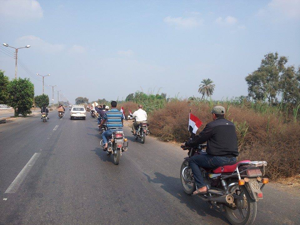 فيما نظم رافضو الانقلاب في "بدين"، مسيرة بالدراجات النارية والسيارات على طريق "محلة دمنه – بدين الزراعي"، رفع فيها المشاركون أعلام مصر وشارات رابعة، كما طالبوا بإسقاط الانقلاب، وعودة المسار الديمقراطي.