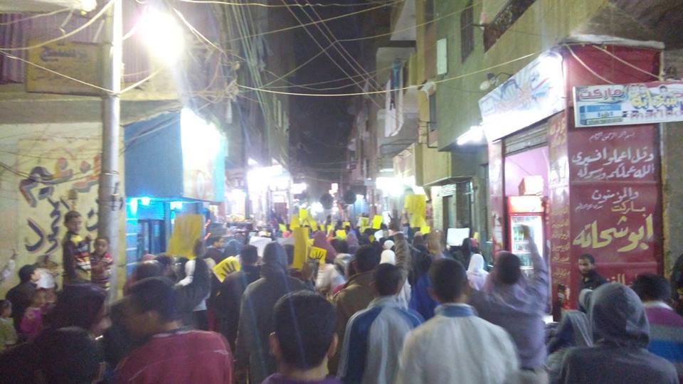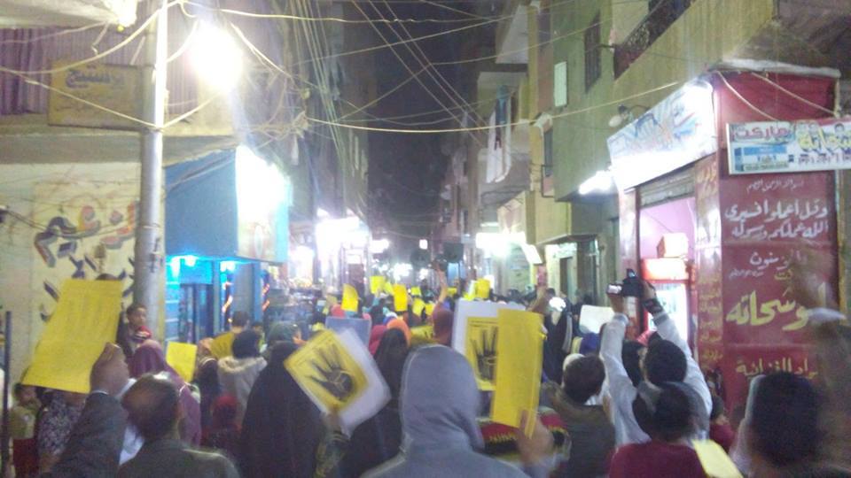 شهدت مدينة الخانكة في محافظة القليوبية، خروج مسيرة ليلية للتنديد بالانقلاب العسكري وممارساته، وللمطالبة بالإفراج عن المعتقلين في سجون العسكر، حمل المشاركون فيها شارات رابعة، وأعلام مصر.